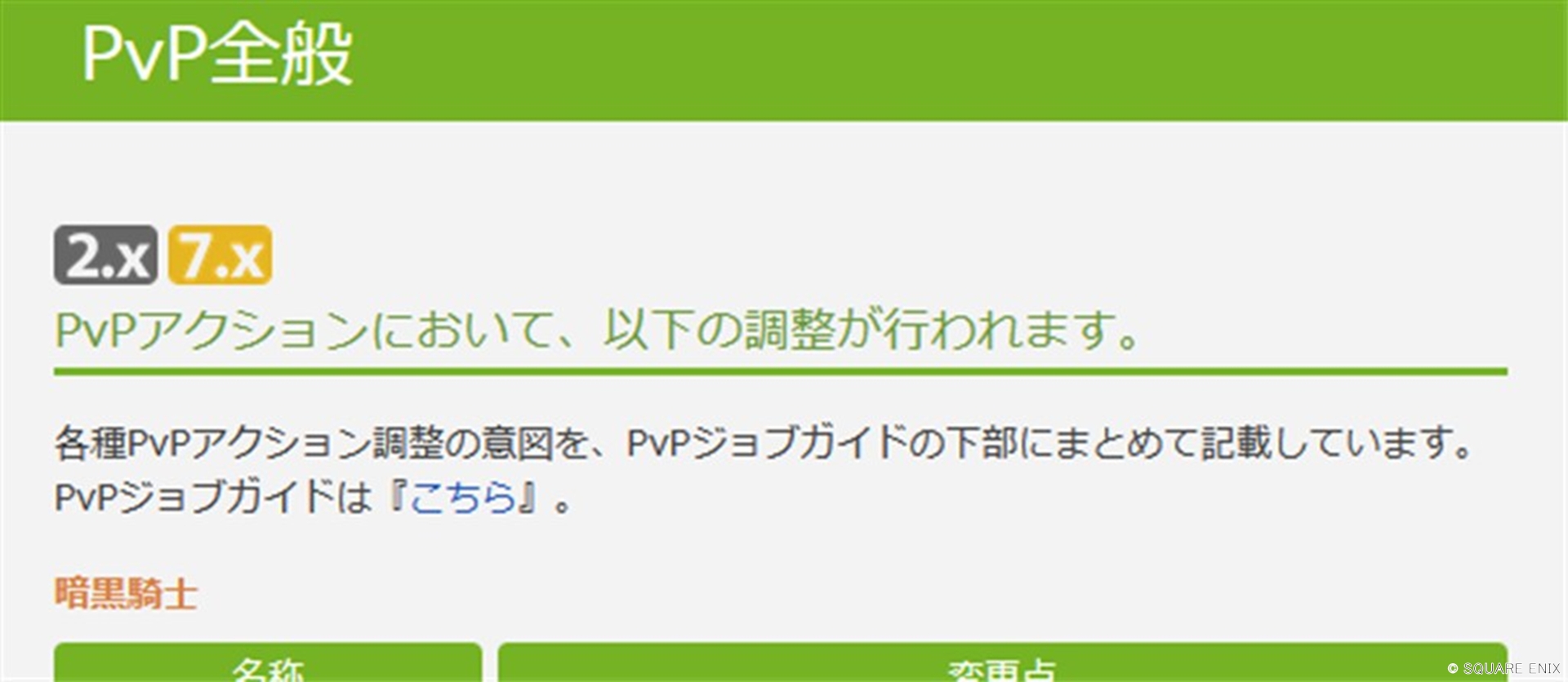 7.16で行われたPvP調整をパッチノートから、ジョブガイドから調整の意図を抜き出しておいたので参考に。