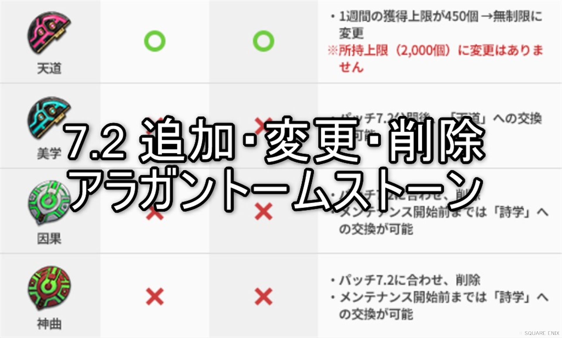 - パッチ7.2以降「アラガントームストーン:天動」への交換が可能