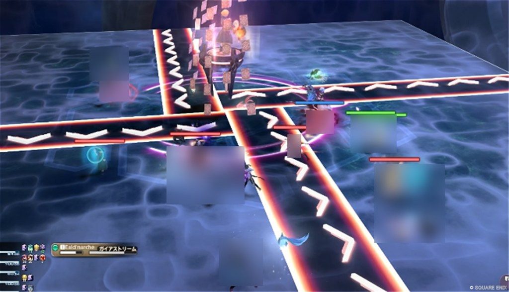 - ボスに表示された色の輪と同じクリスタルから円範囲と複数人に追従円範囲