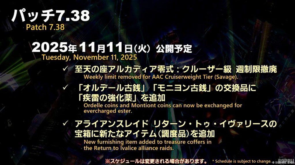 パッチ7.38や7.4の実装日や内容に加え零式のスケジュールも公開されるなど濃い内容になっている模様。