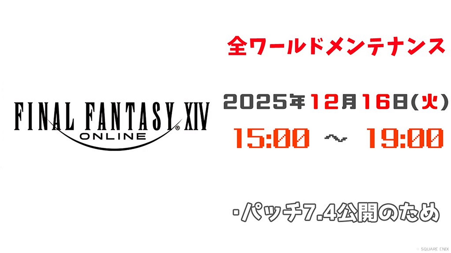 【FF14】パッチ7.4公開のためのメンテナンスが12月16日15時から19時まで実施!
