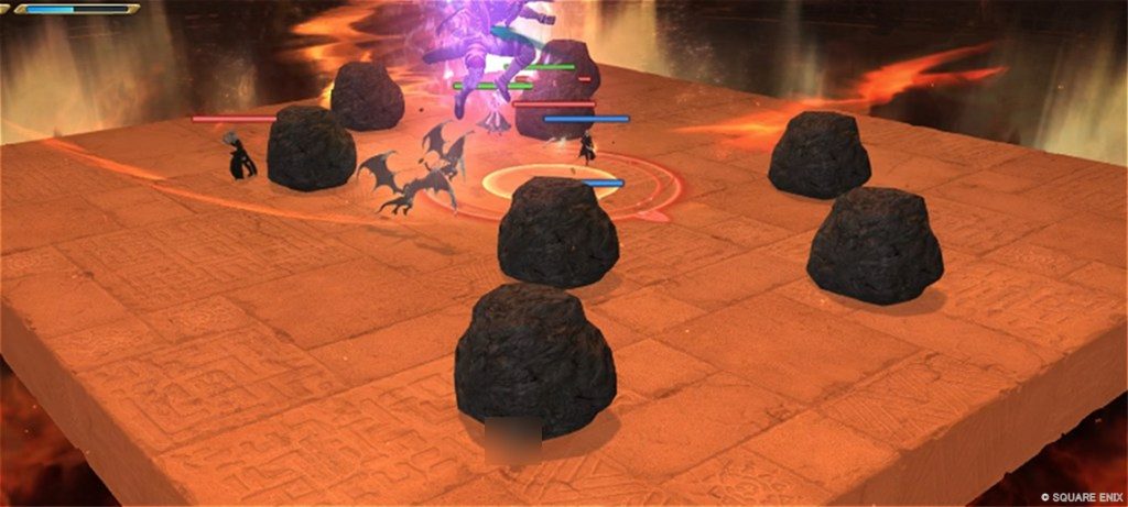 - 中央ボスから2回範囲攻撃が来るので隕石の後ろへ隠れる