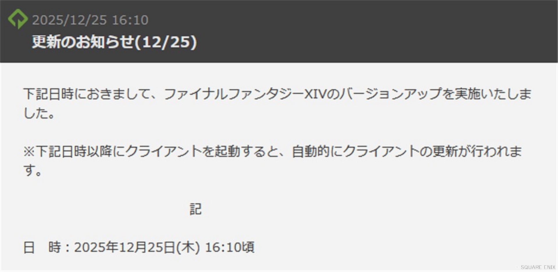 更新のお知らせ(12/25) | FINAL FANTASY XIV, The Lodestone