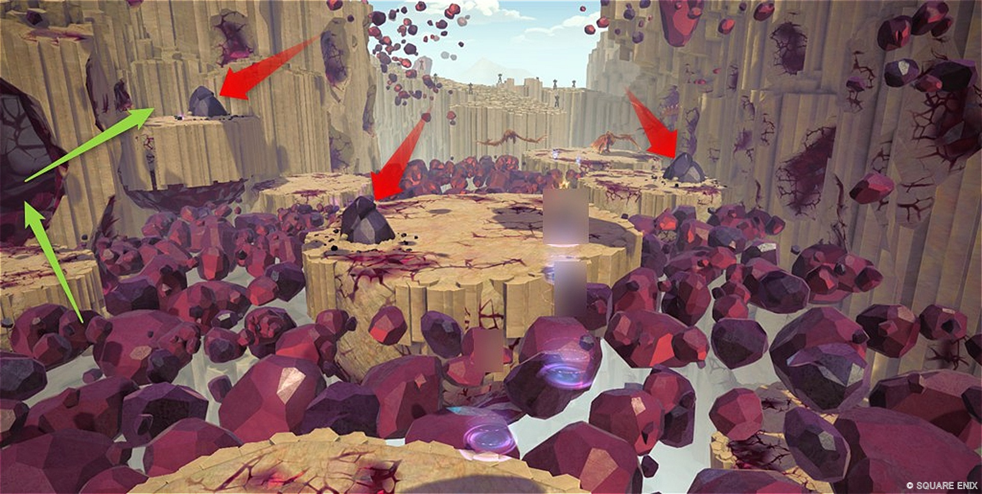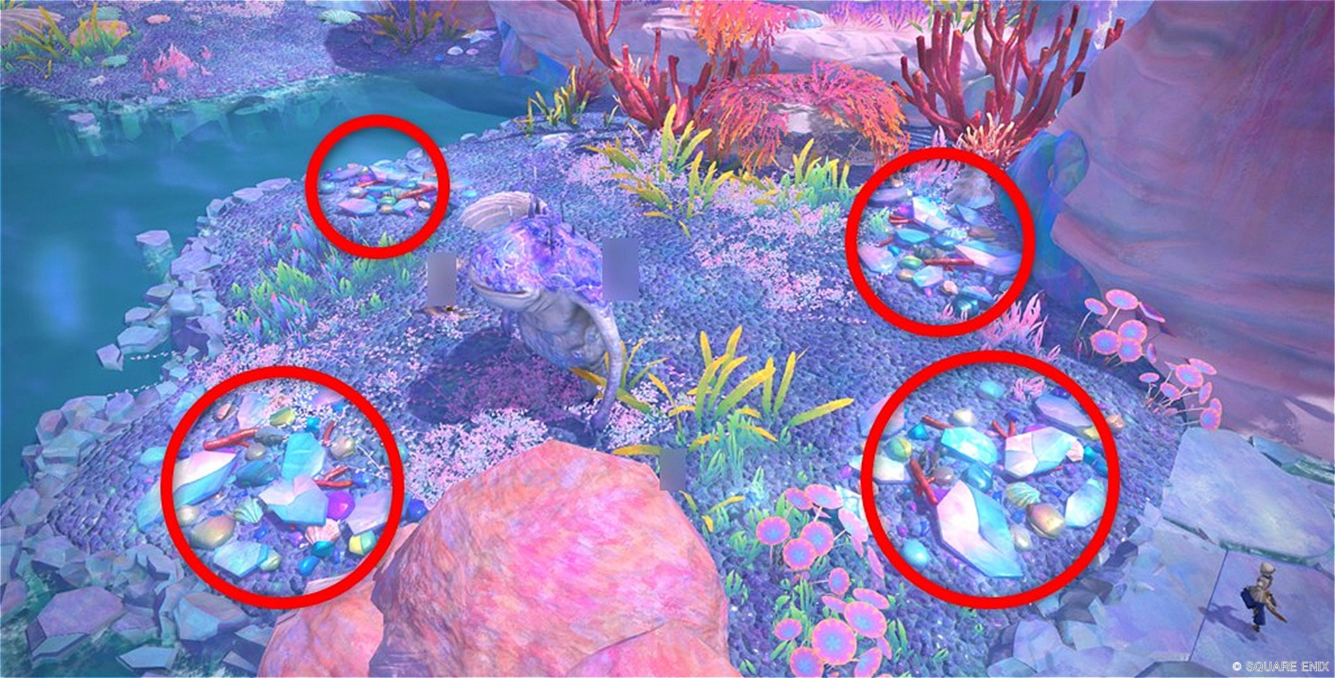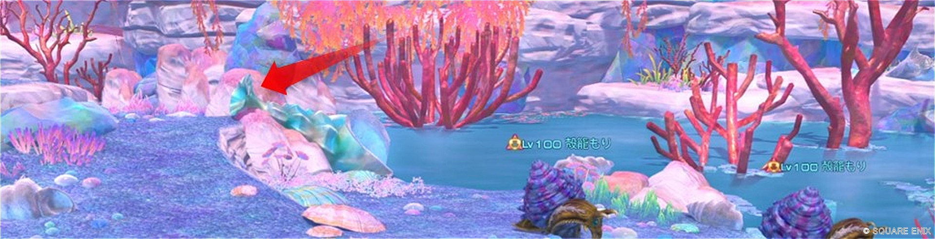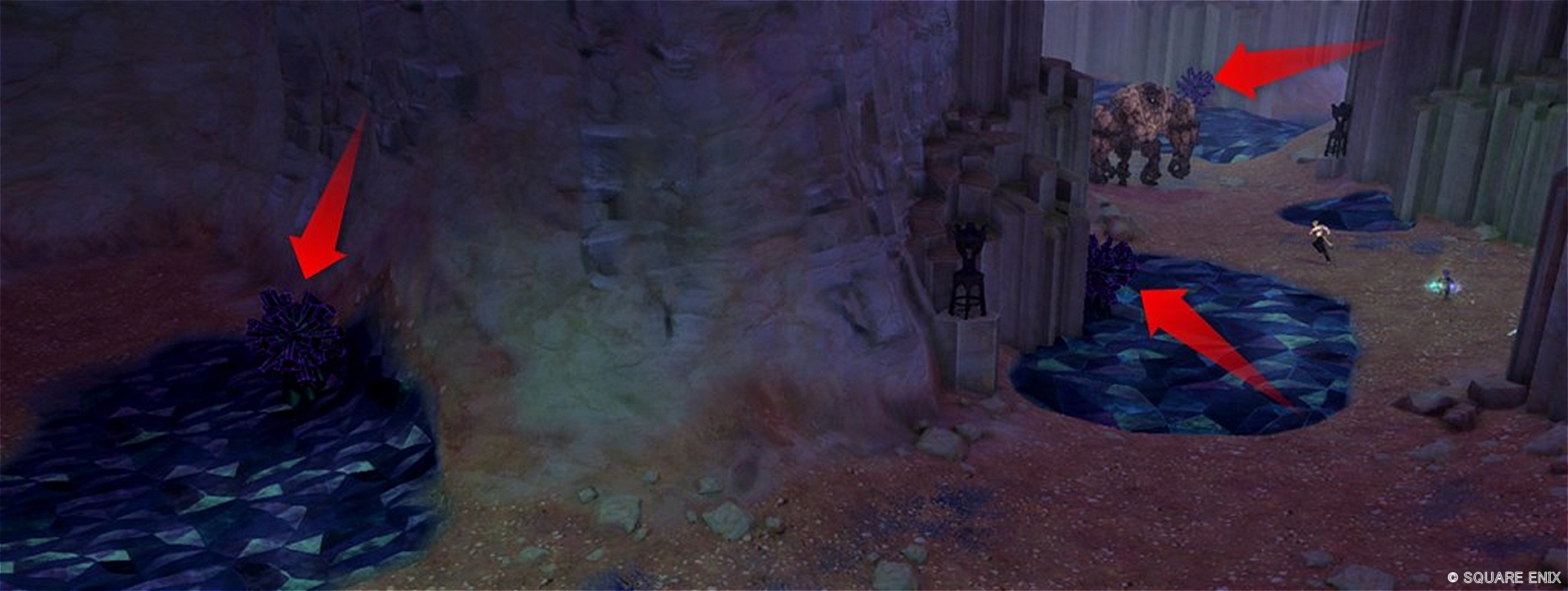 - 3か所ある岩(赤矢印)の近くで待機して反応させる
