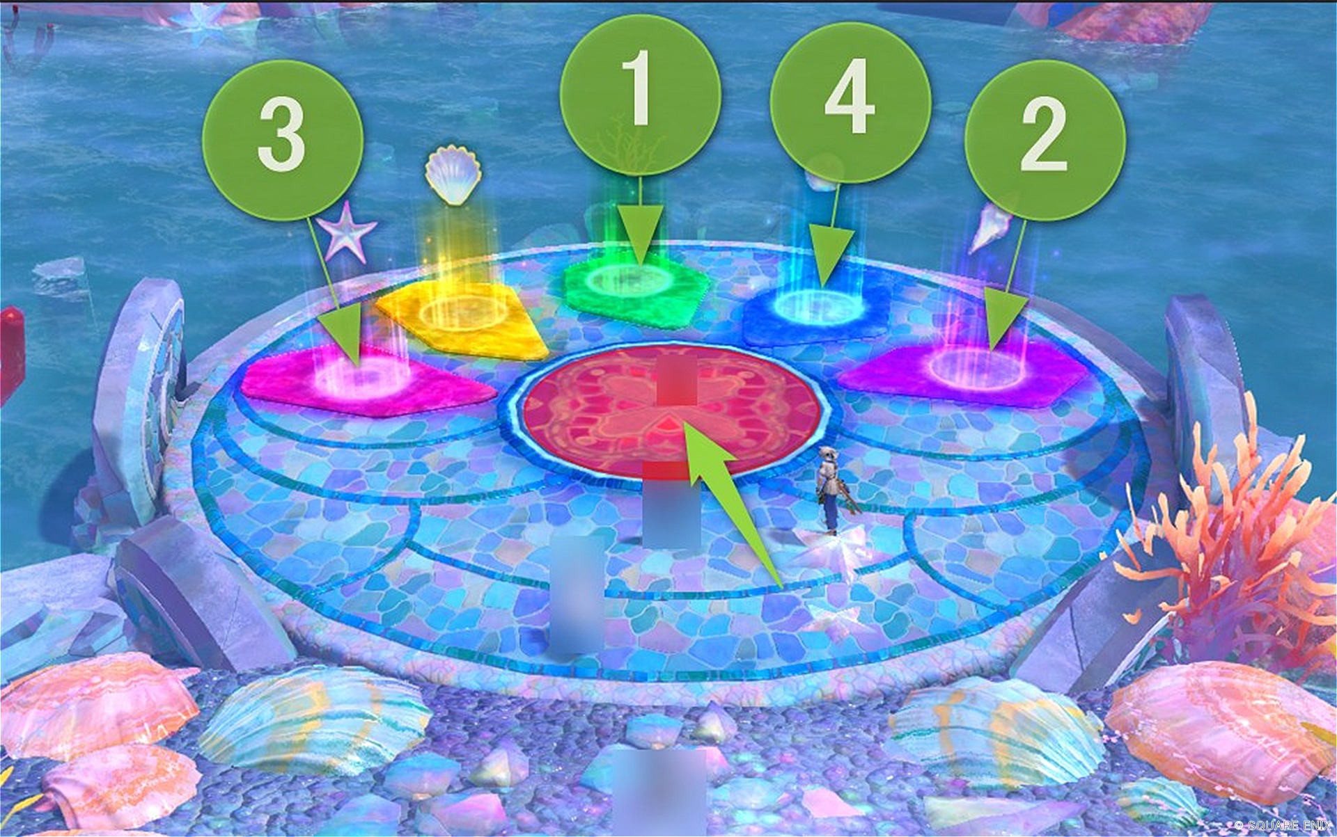 - 「堅岩の人形」の攻撃を3か所あるウニのような石に当てて光らせる